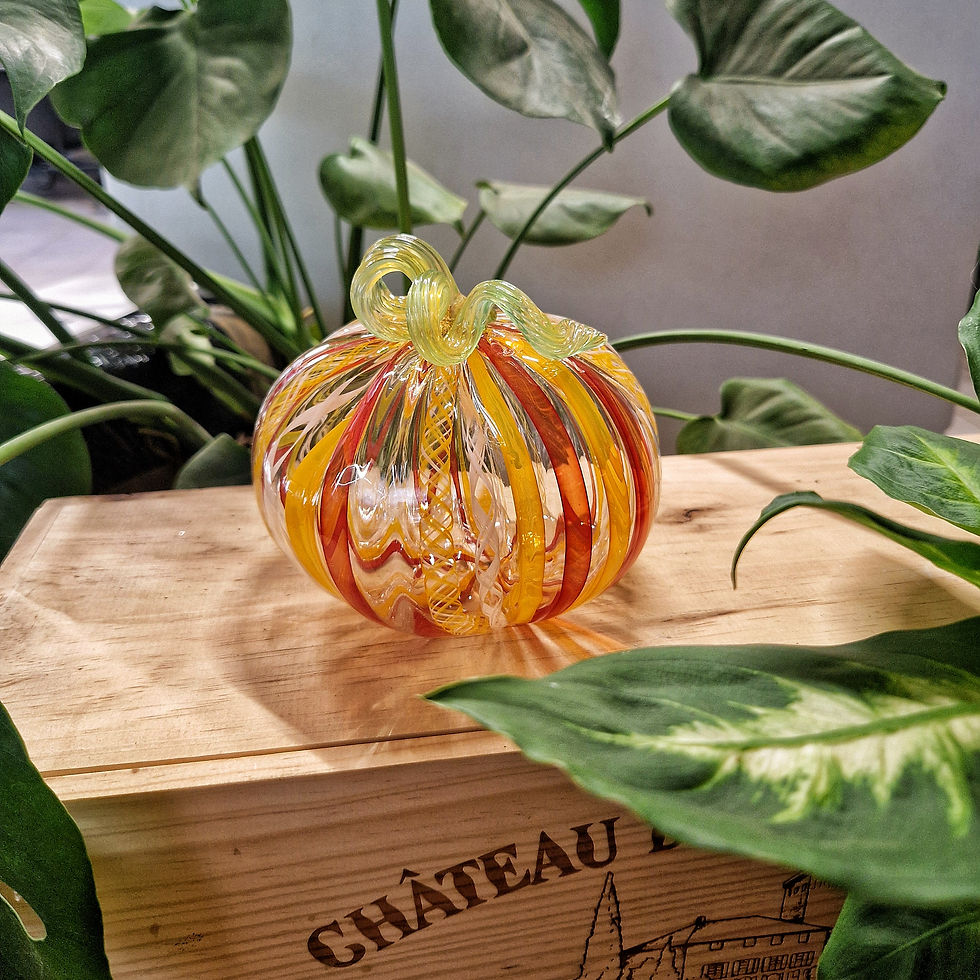 Citrouille en verre d'un diamètre de 13 cm et de 406 grammes.